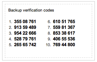 We recommend you store your codes wherever you keep your other valuable items. Like the codes on your phone, backup codes are only valuable to someone if they manage to also steal your password.
